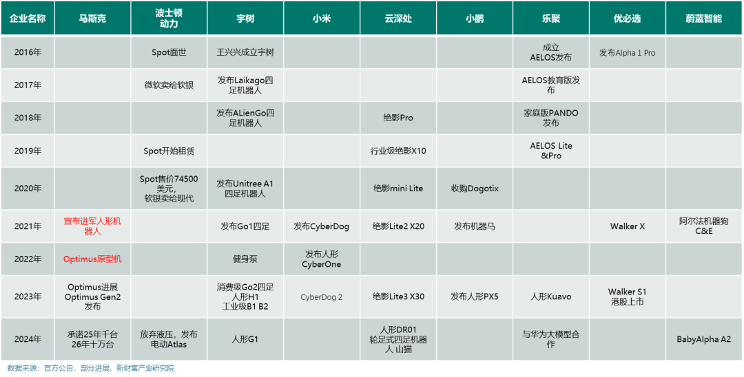 我们也可以看出在马斯克宣布进军人形机器人,到2022年发布Optimus原型机这段时间,国内厂商动作较少,虽然四足机器狗和人形机器人都在推进,但是没有人想在马斯克之前发布,如果自家产品比马斯克的差很多,那场面会比较尴尬。