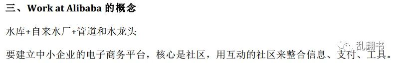 什么是Work at Alibaba?就是阿里要做基础设施,马云的比喻是要做水库,把水送到每家每户。