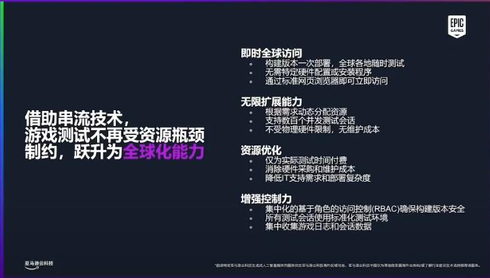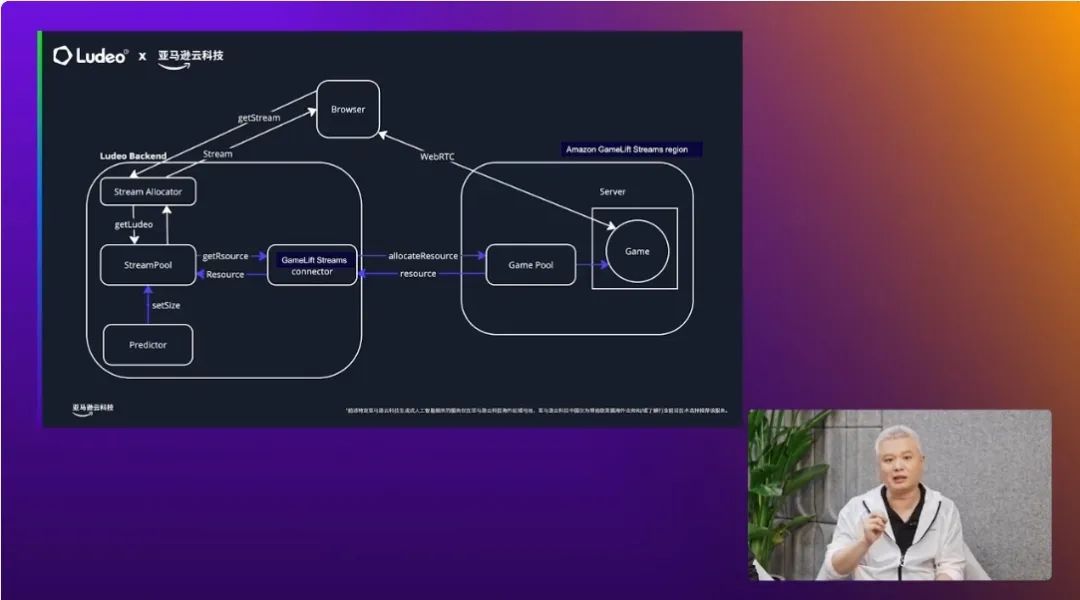 直播中,他提到 GameLift Streams 三大核心优势:一是降低云部署门槛,开发者无需重构代码,就能将现有游戏部署云端开启串流;二是提升内容安全性,游戏内测、试玩等场景可通过 URL 安全投放,防止资源泄露;三是拓展用户渠道,打破设备限制,助力开发者触达智能电视等终端设备,扩大用户覆盖面。