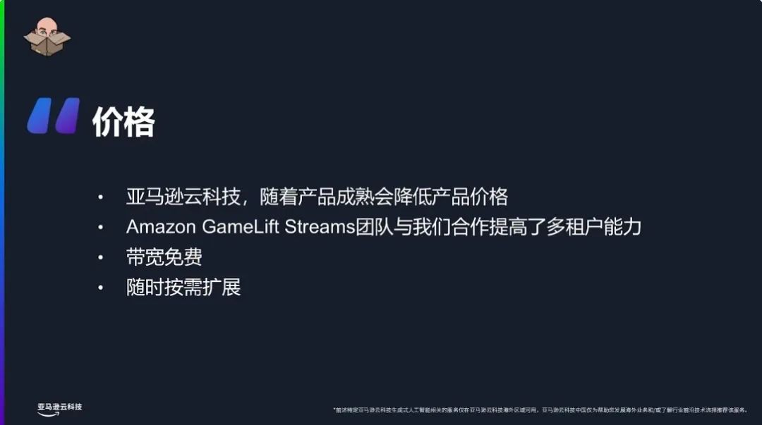 好在厂商云部署门槛正在逐渐降低。像亚马逊云科技这样的成熟供应商出现后,厂商购买服务,使用其边缘计算节点,无需再承担高昂成本。特别是亚马逊云科技的 GameLift Streams 服务,将厂商成本压到了最低。