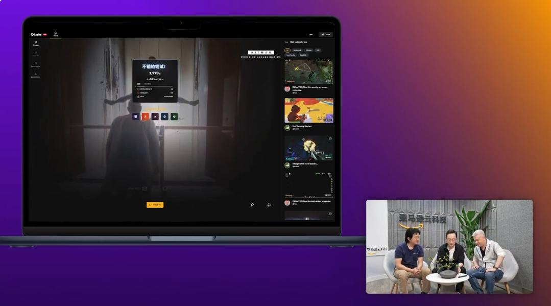直播现场,亚马逊云科技三位专家就在 Ludeo 网站几秒点开了 3A 游戏《HITMAN》,并流畅完成暗杀。