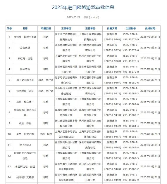 今日,2025年5月版号过审名单发布,共130款国产产品过审,14款进口游戏。