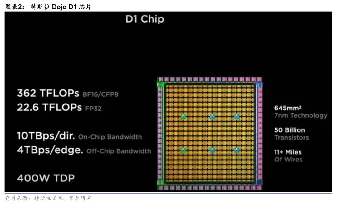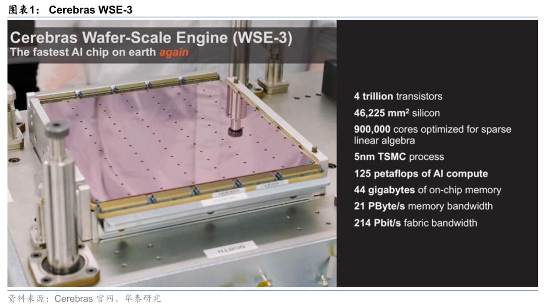 晶圆级集成(WSI)通过在单一、未切割硅晶圆上集成计算单元,突破传统多芯片系统在互联带宽与内存共享方面的限制。其长期价值在于为超大规模AI模型提供统一、高效的计算平台。我们将从芯片互联与内存墙两方面展开分析。互连速度的革命:互连瓶颈日益成为制约当前AI硬件性能和可扩展性的关键因素。随着AI模型规模呈几何级数增长,计算单元和内存之间传输的数据量也大幅增长。传统多GPU系统依赖PCIe或NVLink等芯片间互连技术,虽已经成熟,但与片上通信相比,仍会导致较高的延迟和功耗。随着GPU数量的增加,芯片间互连或将成为主要瓶颈,严重限制AI训练和推理的有效扩展。我们认为晶圆级芯片或为根本解决方案。例如,Cerebras的WSE在单个晶圆上集成数十万个AI内核和大量片上内存,消除多GPU系统中常见的片外通信瓶颈。其片上芯片间互连提供高带宽和超低延迟的内核间通信,速度甚至可超过单个芯片内的通信。Cerebras的WSE-2芯片结构带宽高达220 Pbps,WSE-3比GPU快3715倍。特斯拉的Dojo超级计算机使用“训练单元”定制D1芯片。其芯片间互连带宽比ASIC和英伟达GPU高一个数量级。单个Dojo训练单元间的互联带宽高达18 TB/s。克服内存墙:与互连瓶颈密切相关的是“内存墙”问题,即计算速度的进步远超内存访问速度和带宽速度的提升。大型AI模型需要海量的高速、高带宽内存,而内存带宽不足将严重限制其性能。晶圆级设计通过将大量片上内存直接集成到处理单元中来绕过内存瓶颈。WSE的优势在于其大规模、高速片上SRAM,均匀分布在所有内核上,允许每个内核在单个时钟周期内访问高速内存,从而有效消除片上数据的“内存墙”效应。Dojo的D1芯片也集成片上SRAM,并强调计算和内存“共址”,以最大限度减少数据传输。