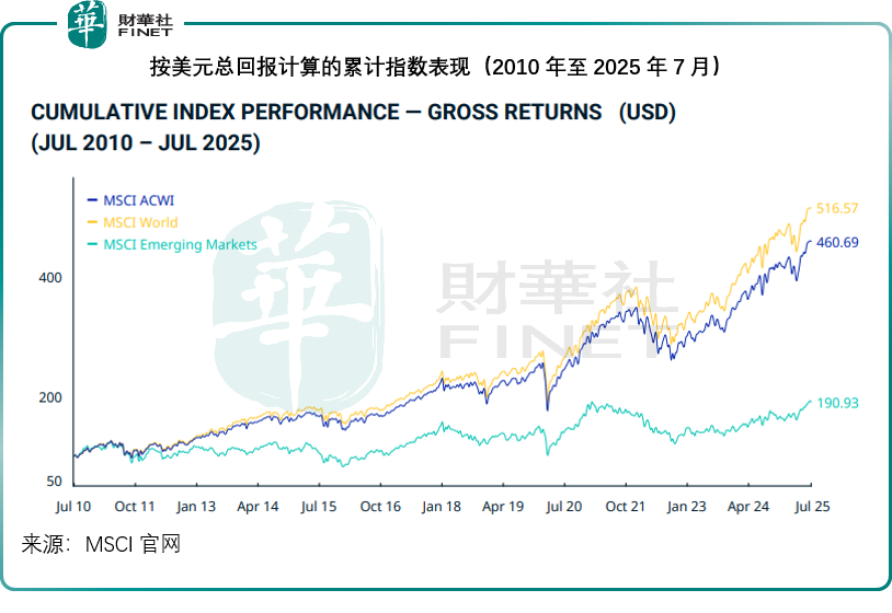 截至2025年7月31日止,MSCI ACWI指数自1987年12月31日以来的年化回报率为8.55%,其中新兴市场的表现达到9.80%,高于平均水平。