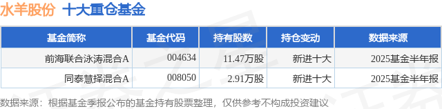 根据2025基金半年报公募基金重仓股数据,重仓该股的公募基金共2家,其中持有数量最多的公募基金为前海联合的前海联合泳涛混合A。前海联合泳涛混合A目前规模为0.12亿元,最新净值1.2797(8月20日),较上一交易日上涨1.46%,近一年上涨19.65%。该公募基金现任基金经理为王静。