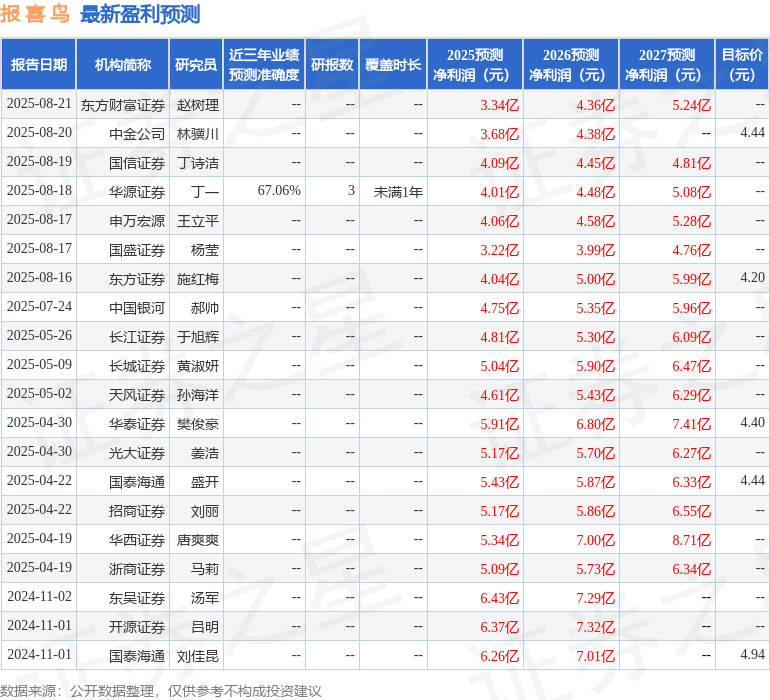 证券之星数据中心根据近三年发布的研报数据计算,华源证券丁一研究员团队对该股研究较为深入,近三年预测准确度均值为67.06%,其预测2025年度归属净利润为盈利4.01亿,根据现价换算的预测PE为14.33。