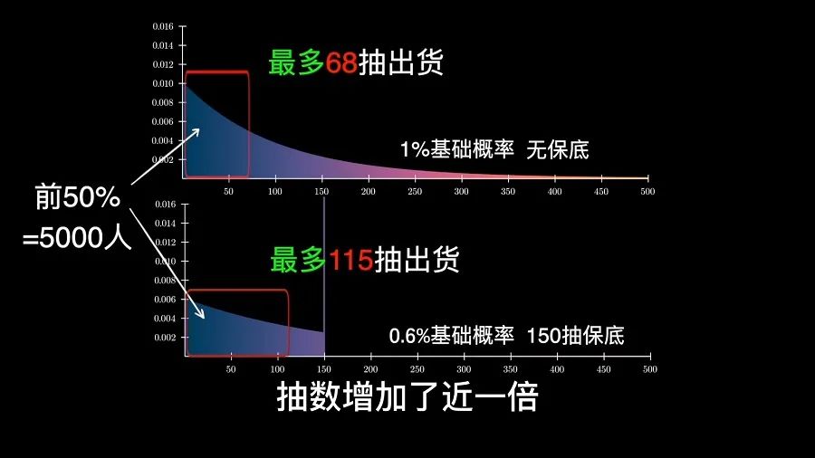 此类游戏五星基础概率都较低,基本都小于1%。如某大型开放世界游戏五星概率0.6%,也有的二次元游戏五星概率0.8%。同时UP卡池中,抽中五星角色中,UP角色出货率占50%。