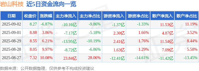9月2日的资金流向数据方面,主力资金净流出10.16亿元,占总成交额9.86%,游资资金净流出1.37亿元,占总成交额1.33%,散户资金净流入11.53亿元,占总成交额11.19%。