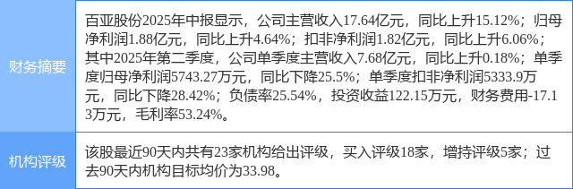 今日百亚股份(003006)涨5.13%,收盘报31.74元。