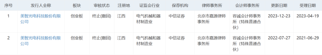 然而,在2023年12月,专注于照明及智能前装产品设计、研发、生产和销售的美智光电第二次撤回创业板上市申请,终止IPO进程。