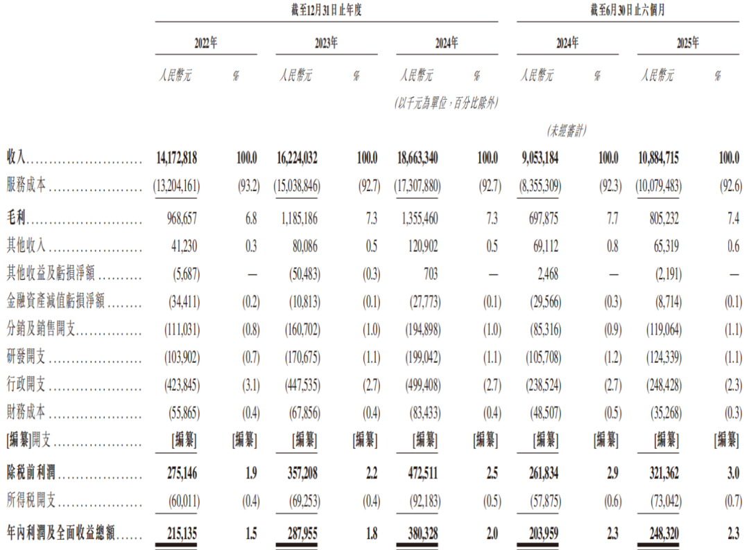 据招股书,2022年至2024年,安得智联收入从141.73亿元增长至186.63亿元,复合年增长率14.8%;同期净利润从2.15亿元升至3.80亿元,复合增长率高达33.0%。
