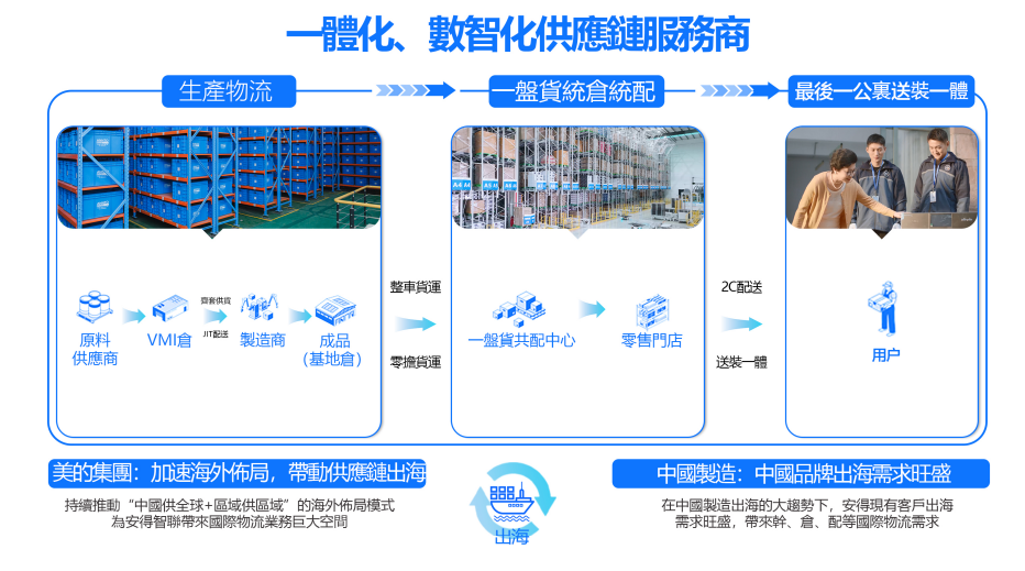 安得智联的优势在于依托美的集团深厚的制造背景,形成从生产端到消费端的全链路解决方案。