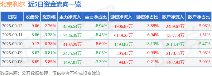 9月12日的资金流向数据方面,主力资金净流出4396.54万元,占总成交额8.94%,游资资金净流入1906.87万元,占总成交额3.88%,散户资金净流入2489.67万元,占总成交额5.06%。