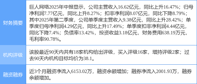 2025年8月29日,国元证券研究员李典,郜子娴发布了对巨人网络的研报《2025年半年报点评:《超自然行动组》表现超预期,业绩有望逐步释放》,该研报对巨人网络给出“买入”评级。研报中预计25-27年EPS为1.09/1.58/1.74元,PE为28/19/17x,维持“买入”评级。证券之星数据中心根据近三年发布的研报数据计算,该研报作者对此股的盈利预测准确度为96.41%。