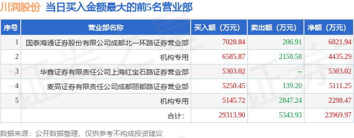 从龙虎榜公布的当日买卖数据来看,机构合计净买入6733.77万元。炒股养家等知名游资榜上有名。(知名游资炒股养家一般指华鑫证券有限责任公司上海红宝石路证券营业部席位,根据市场资料整理,仅供参考)
