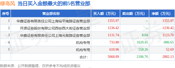 证券之星消息,沪深交易所2025年9月19日公布的交易公开信息显示,绿岛风(301043)因日涨幅达到15%的前5只证券登上龙虎榜。此次是近5个交易日内第1次上榜。