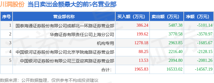证券之星消息,沪深交易所2025年9月22日公布的交易公开信息显示,川润股份(002272)因日换手率达到20%的前5只证券登上龙虎榜。此次是近5个交易日内第3次上榜。