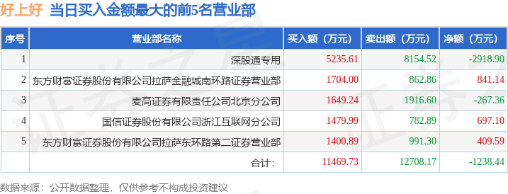 证券之星消息,沪深交易所2025年9月22日公布的交易公开信息显示,好上好(001298)因日换手率达到20%的前5只证券登上龙虎榜。此次是近5个交易日内第1次上榜。