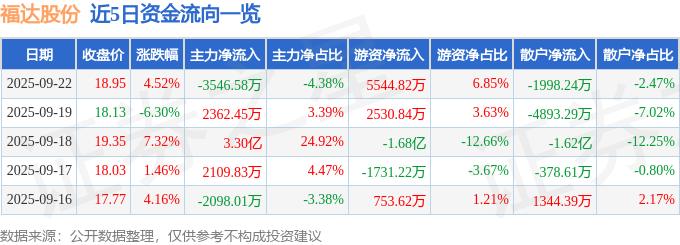 9月22日的资金流向数据方面,主力资金净流出3546.58万元,占总成交额4.38%,游资资金净流入5544.82万元,占总成交额6.85%,散户资金净流出1998.24万元,占总成交额2.47%。