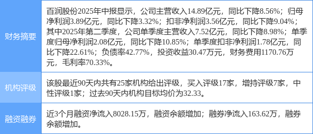 2025年8月28日,东吴证券研究员苏铖,郭晓东发布了对百润股份的研报《2025年中报点评:预调酒主业延续调整,期待威士忌打开成长空间》,该研报对百润股份给出“买入”评级。证券之星数据中心根据近三年发布的研报数据计算,该研报作者对此股的盈利预测准确度为79.98%。