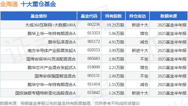 重仓金海通的公募基金请见下表: