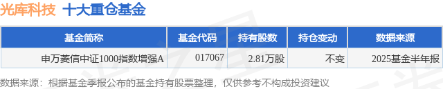 根据2025基金半年报公募基金重仓股数据,重仓该股的公募基金共1家,其中持有数量最多的公募基金为申万菱信基金的申万菱信中证1000指数增强A。申万菱信中证1000指数增强A目前规模为0.87亿元,最新净值1.2495(9月25日),较上一交易日下跌0.26%,近一年上涨66.2%。该公募基金现任基金经理为刘敦 夏祥全。刘敦在任的基金产品包括:申万菱信沪深300指数增强A,管理时间为2019年4月18日至今,期间收益率为46.71%;申万菱信量化对冲策略灵活配置混合发起式A,管理时间为2020年3月25日至今,期间收益率为15.57%;申万菱信中证500指数优选增强A,管理时间为2020年4月15日至今,期间收益率为70.01%;夏祥全在任的基金产品包括:申万菱信量化对冲策略灵活配置混合发起式A,管理时间为2020年10月21日至今,期间收益率为10.34%;申万菱信红利量化选股股票A,管理时间为2024年5月28日至今,期间收益率为14.81%;申万菱信量化小盘股票(LOF)C,管理时间为2025年8月11日至今,期间收益率为7.36%。