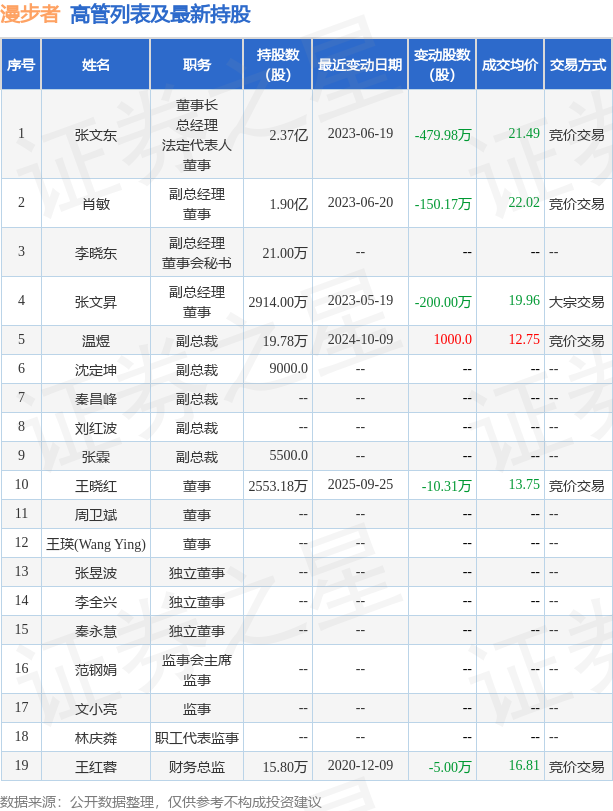 漫步者的高管列表及最新持股情况如下: