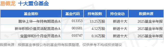 根据2025基金半年报公募基金重仓股数据,重仓该股的公募基金共3家,其中持有数量最多的公募基金为鹏华基金的鹏华上华一年持有期混合A。鹏华上华一年持有期混合A目前规模为3.74亿元,最新净值1.0272(9月29日),较上一交易日上涨0.14%,近一年上涨3.89%。该公募基金现任基金经理为杨雅洁。杨雅洁在任的基金产品包括:鹏华招华一年持有期混合A,管理时间为2021年10月13日至今,期间收益率为6.29%;鹏华双债增利债券A,管理时间为2021年10月27日至今,期间收益率为4.37%;鹏华安裕5个月持有期混合A,管理时间为2022年3月25日至今,期间收益率为6.03%;鹏华稳健增利债券A,管理时间为2023年1月16日至今,期间收益率为7.33%。