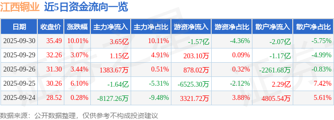 9月30日的资金流向数据方面,主力资金净流入3.65亿元,占总成交额10.11%,游资资金净流出1.57亿元,占总成交额4.36%,散户资金净流出2.07亿元,占总成交额5.75%。