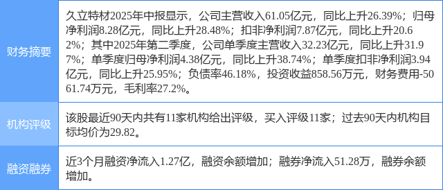 今日久立特材(002318)涨8.04%,收盘报26.33元。