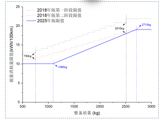 《公告》中对纯电动乘用车有关技术要求调整为:纯电动乘用车百公里电能消耗量应不高于《电动汽车能量消耗量限值第1部分:乘用车》(GB 36980.1—2025)对应车型的电能消耗量限值。最大设计总质量超过3500kg的乘用车电能消耗量限值要求,参照GB 36980.1—2025中最大设计总质量为3500kg乘用车电能消耗量限值执行。