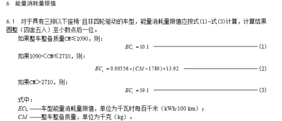 电量消耗模式下,整备质量≤2510kg的车型:电能消耗需低于国标限值的140%;整备质量>2510kg的车型:电能消耗需低于国标限值的145%;同样,最大设计总质量超过3500kg级的车型,电能消耗量参照3500kg级国标限值执行。
