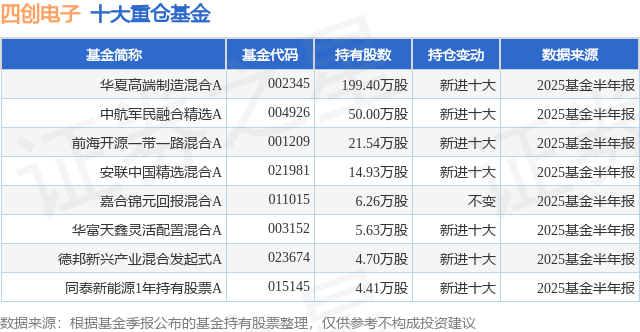 重仓四创电子的公募基金请见下表: