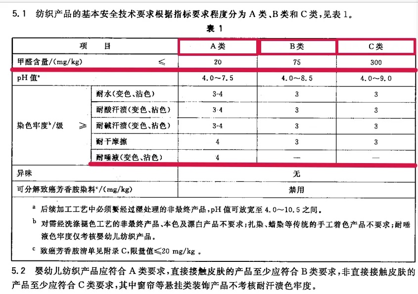 床品安全级别的指数--GB 18401-2010《国家纺织产品基本安全技术规范》。