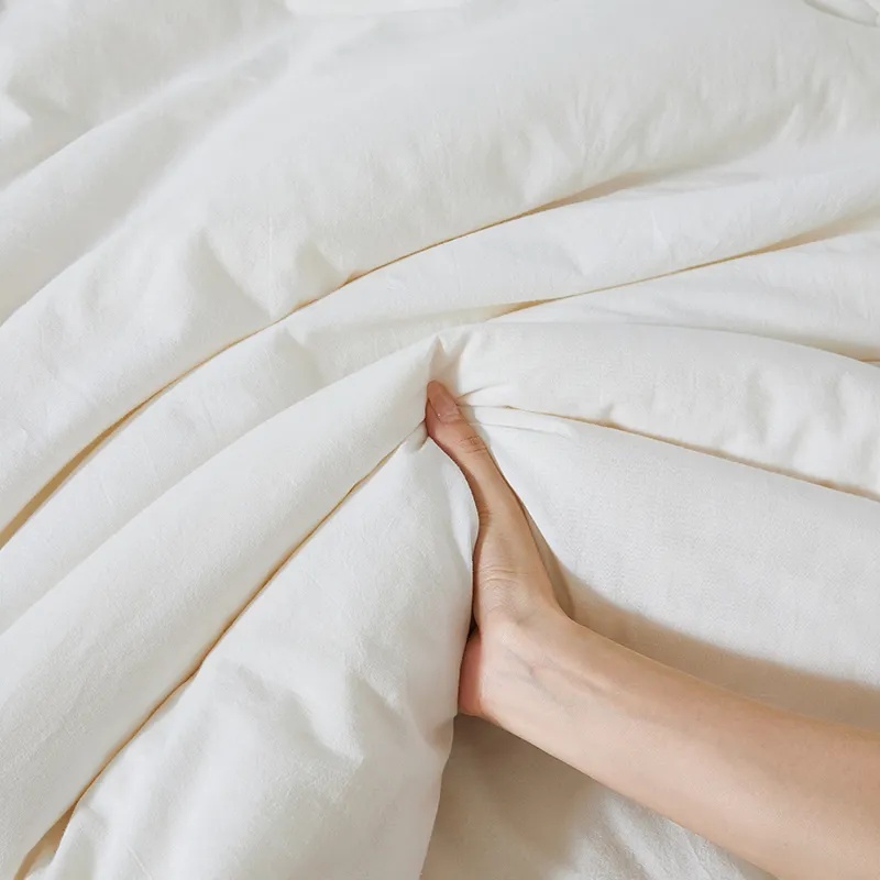 被面采用水洗工艺,顾名思义就是面料经过多次高温水洗打磨处理,这样纤维会变得更蓬松。