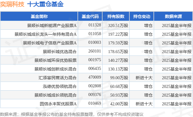 根据2025基金半年报公募基金重仓股数据,重仓该股的公募基金共49家,其中持有数量最多的公募基金为景顺长城基金的景顺长城新能源产业股票A。景顺长城新能源产业股票A目前规模为23.7亿元,最新净值1.5177(9月30日),较上一交易日上涨1.36%,近一年上涨45.67%。该公募基金现任基金经理为杨锐文 曾英捷。杨锐文在任的基金产品包括:景顺长城优选混合,管理时间为2014年10月25日至今,期间收益率为345.23%;景顺长城环保优势股票,管理时间为2016年3月15日至今,期间收益率为321.5%;景顺长城创新成长混合,管理时间为2019年10月17日至今,期间收益率为110.72%;景顺长城成长领航混合,管理时间为2020年5月28日至今,期间收益率为76.22%。