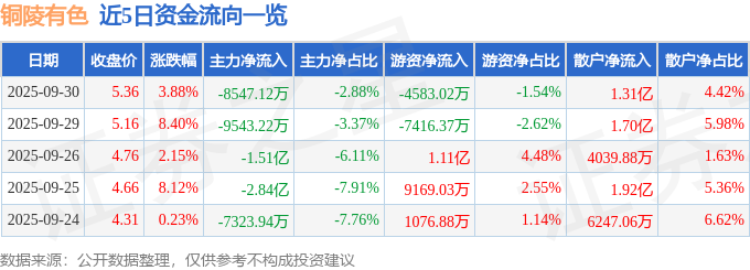 9月30日的资金流向数据方面,主力资金净流出8547.12万元,占总成交额2.88%,游资资金净流出4583.02万元,占总成交额1.54%,散户资金净流入1.31亿元,占总成交额4.42%。