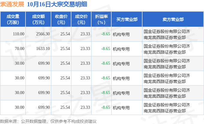 证券之星消息,10月16日索通发展发生大宗交易,交易数据如下:
