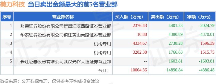 证券之星消息,沪深交易所2025年10月15日公布的交易公开信息显示,美力科技(300611)因日涨幅达到15%的前5只证券登上龙虎榜。此次是近5个交易日内第2次上榜。