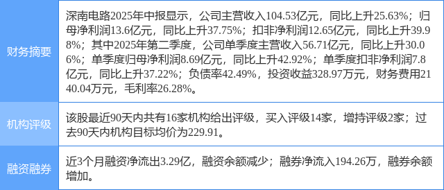2025年9月2日,招银国际研究员杨天薇,张元圣,蒋嘉豪发布了对深南电路的研报《二季度业绩强劲:销售创新高,利润率扩张;维持“买入”评级》,该研报对深南电路给出“买入”评级,认为其目标价为235.0元,研报发布时股价为199.88元,预期涨幅为17.57%。证券之星数据中心根据近三年发布的研报数据计算,该研报作者对此股的盈利预测准确度为65.53%。