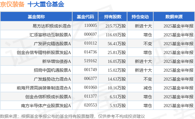 根据2025基金半年报公募基金重仓股数据,重仓该股的公募基金共15家,其中持有数量最多的公募基金为易方达基金的易方达积极成长混合。易方达积极成长混合目前规模为24.93亿元,最新净值0.7751(10月13日),较上一交易日下跌0.41%,近一年上涨59.78%。该公募基金现任基金经理为何崇恺。何崇恺在任的基金产品包括:易方达国防军工混合A,管理时间为2019年11月28日至今,期间收益率为112.99%;易方达竞争优势企业混合A,管理时间为2025年6月21日至今,期间收益率为31.01%。