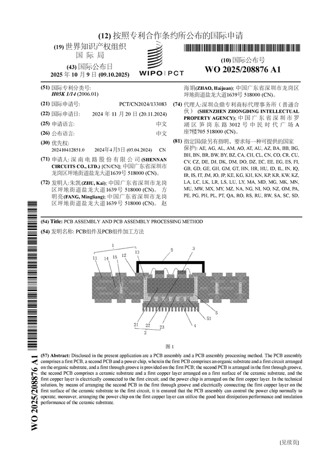证券之星消息,根据企查查数据显示深南电路(002916)公布了一项国际专利申请,专利名为“PCB组件及PCB组件加工方法”,专利申请号为PCT/CN2024/133083,国际公布日为2025年10月9日。