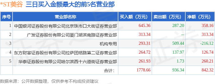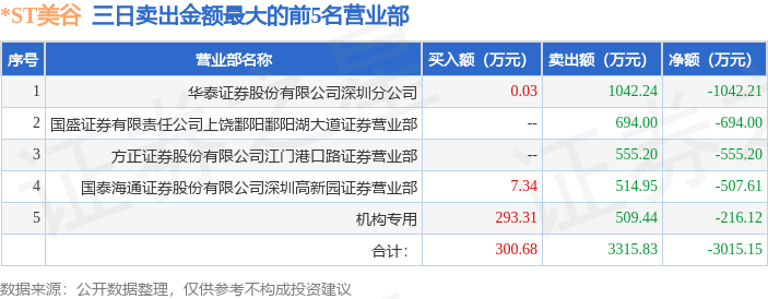 证券之星消息,沪深交易所2025年10月14日公布的交易公开信息显示,*ST美谷(000615)因连续三个交易日内,涨幅偏离值累计达到12%的ST证券、*ST证券和未完成股改证券登上龙虎榜。此次是近5个交易日内第1次上榜。