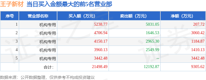 证券之星消息,沪深交易所2025年10月14日公布的交易公开信息显示,王子新材(002735)因日换手率达到20%的前5只证券登上龙虎榜。此次是近5个交易日内第2次上榜。