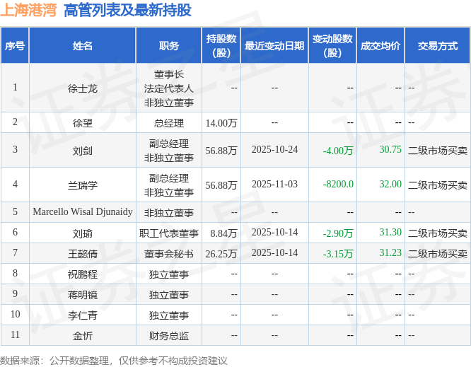 上海港湾近半年内的董监高及核心技术人员增减持详情如下: