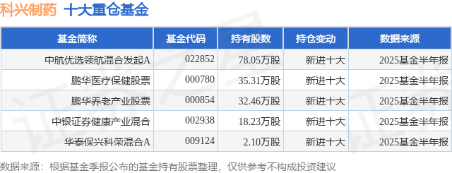 根据2025基金半年报公募基金重仓股数据,重仓该股的公募基金共5家,其中持有数量最多的公募基金为中航基金的中航优选领航混合发起A。中航优选领航混合发起A目前规模为0.58亿元,最新净值1.8436(10月16日),较上一交易日上涨1.91%。该公募基金现任基金经理为王森。王森在任的基金产品包括:中航恒宇港股通价值优选混合发起A,管理时间为2023年9月27日至今,期间收益率为17.76%;中航趋势领航混合发起A,管理时间为2024年6月18日至今,期间收益率为155.01%;中航远见领航混合发起A,管理时间为2024年8月30日至今,期间收益率为55.17%;