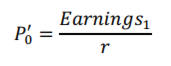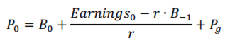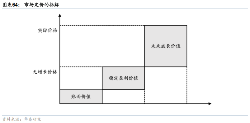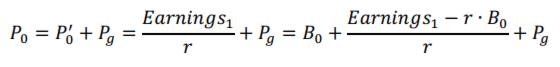 上式即无增长时企业的合理定价。因此当企业未来存在增长时,市场的真实定价中除了该项还需要额外支付一部分企业未来成长溢价,即: