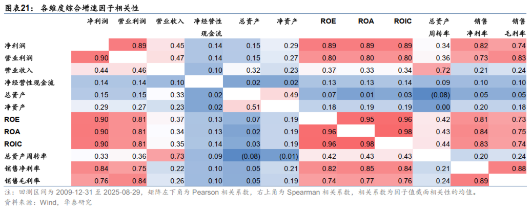 1、盈利:剔除营业利润因子,保留相关性较低的净利润和营业收入因子,分别考察企业的赚钱能力和市场规模成长性;