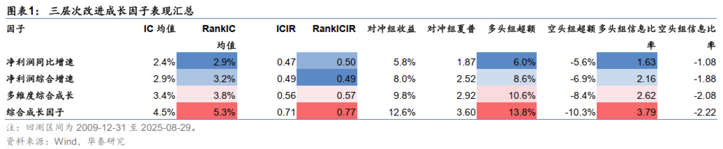 本文尝试从三个层次对成长因子进行全方位优化,实证结果表明经合成得到综合成长因子相比传统成长因子表现提升显著: