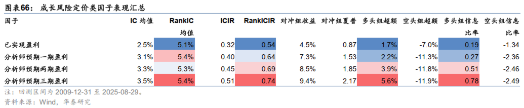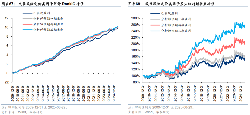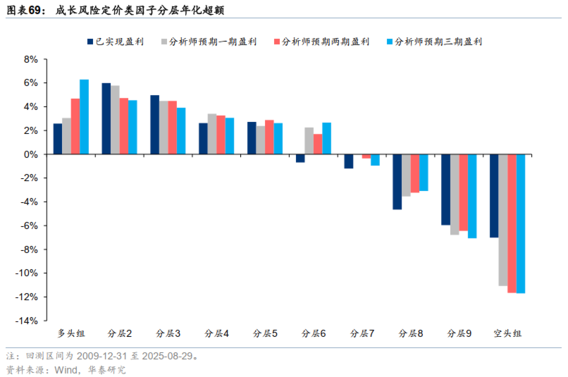 结果表明,市场对于企业剔除无增长价值后的成长风险溢价定价仍不充分,买入未来成长定价较低的企业可获稳定超额。而利用分析师预测数据的因子相比仅利用已实现盈利数据的因子表现更优,保留未来三期分析师预期因子表现最佳。